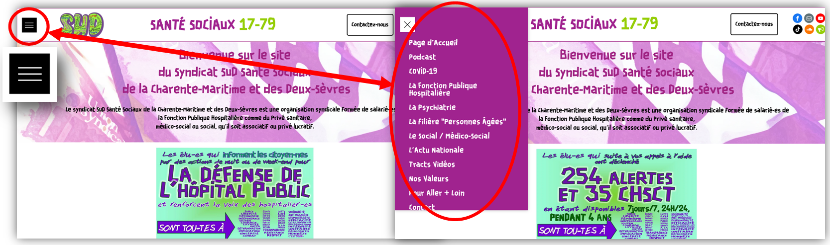 pour accéder au menu des différentes pages du site.