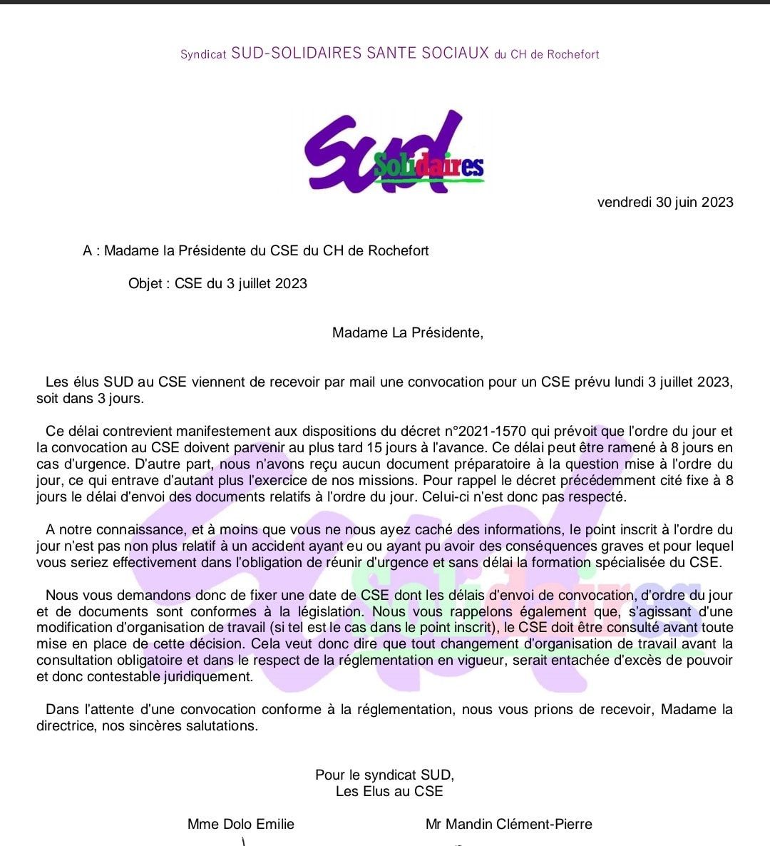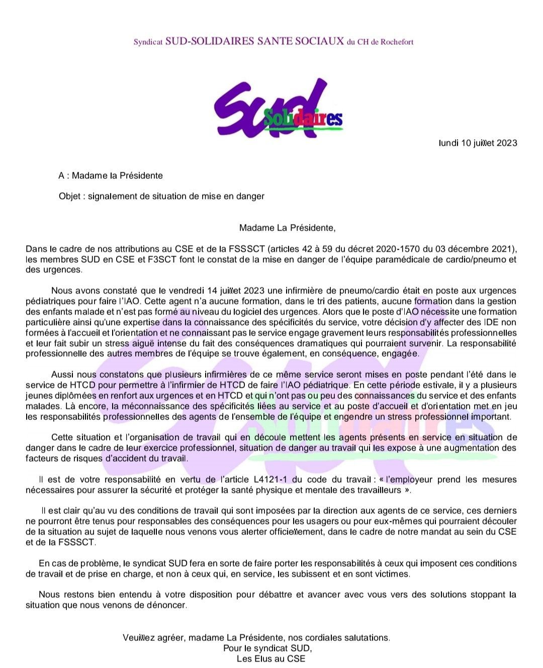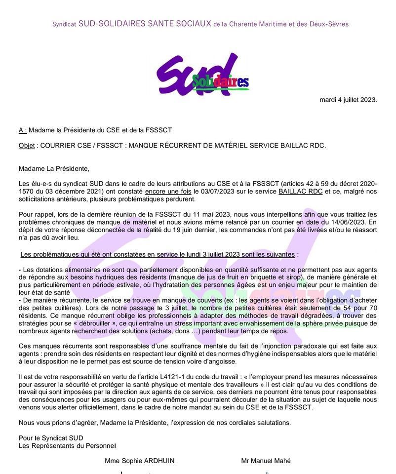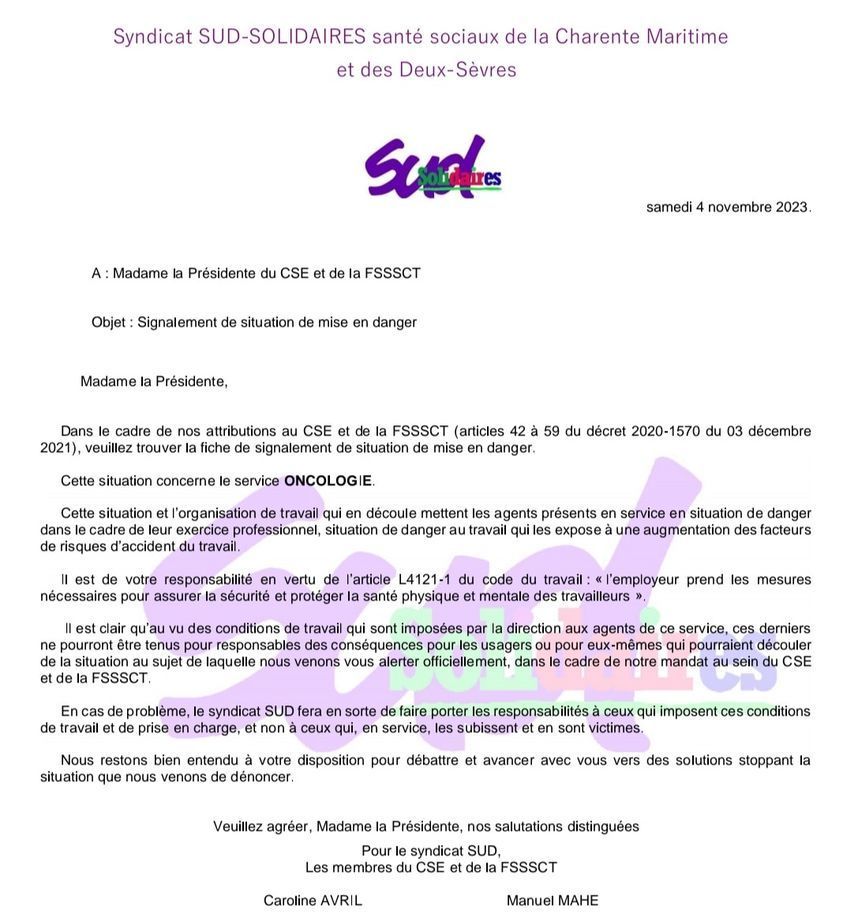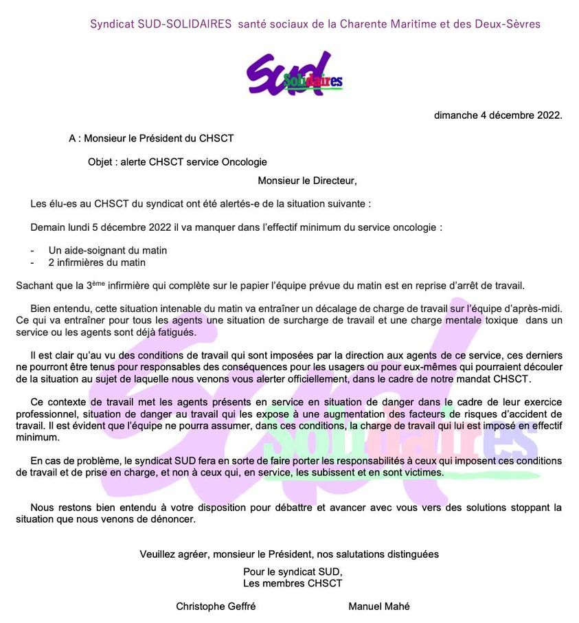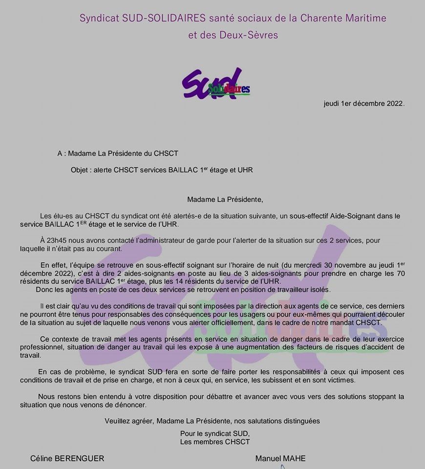 URGENT ON A BESOIN DE VOUS. SUD a déclenché un CHSCT AU GH LA ROCHELLE RE AUNIS