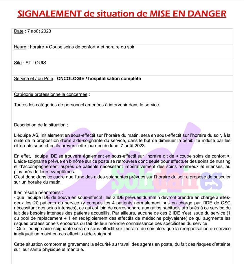 Ne pas être en effectif ou être en effectif avec du personnel non formé aux spécificités du service, c'est dangereux. Résistez avec SUD !