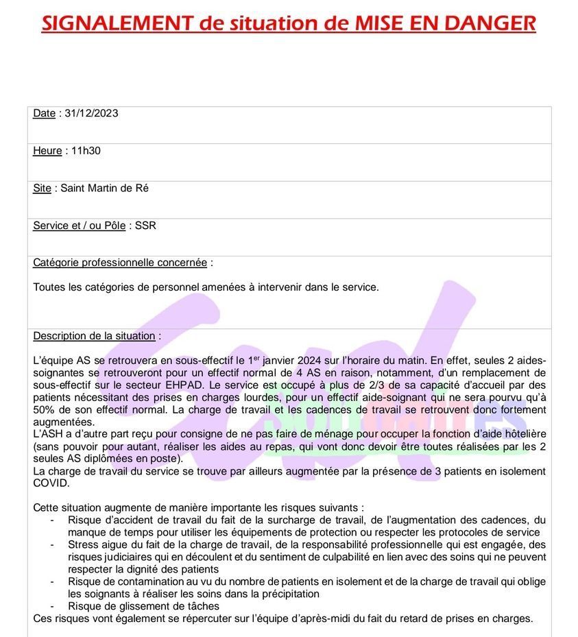 Indignité et cynisme au SSR de Saint Martin de Ré : la direction impose demain des conditions de travail et de soins + que dégradées.