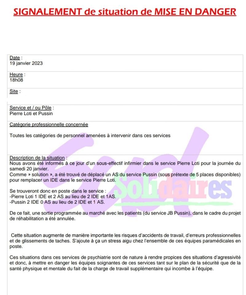 JB Pussin, service de psychiatrie, en sous effectif ce matin. Comme à l'accoutumée, SUD répond présent 7/7j toute l'année, depuis des années, et ça ne changera pas