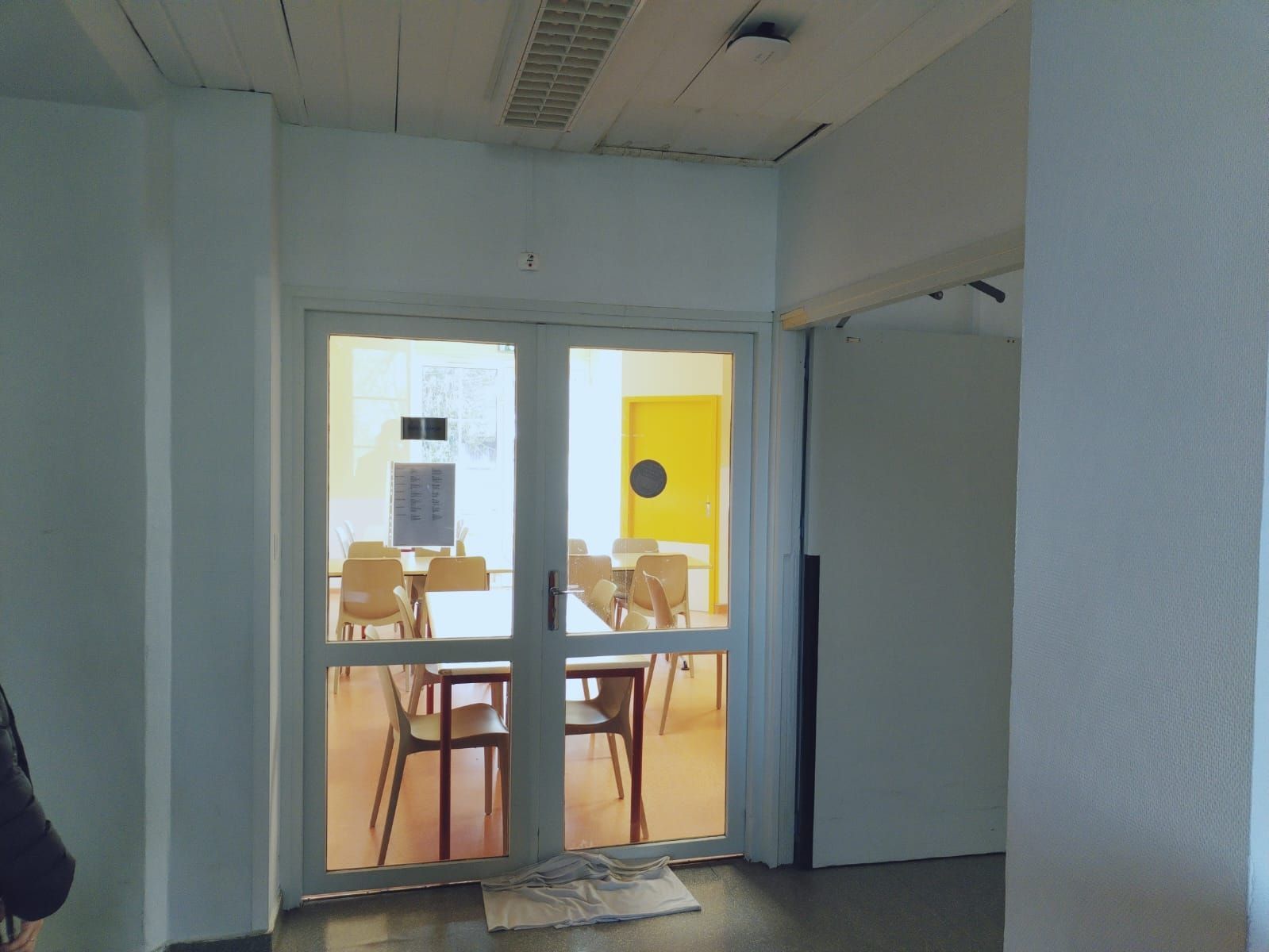 Fuite d'eau usée à l'entrée de la salle à manger d'un service de psychiatrie.
