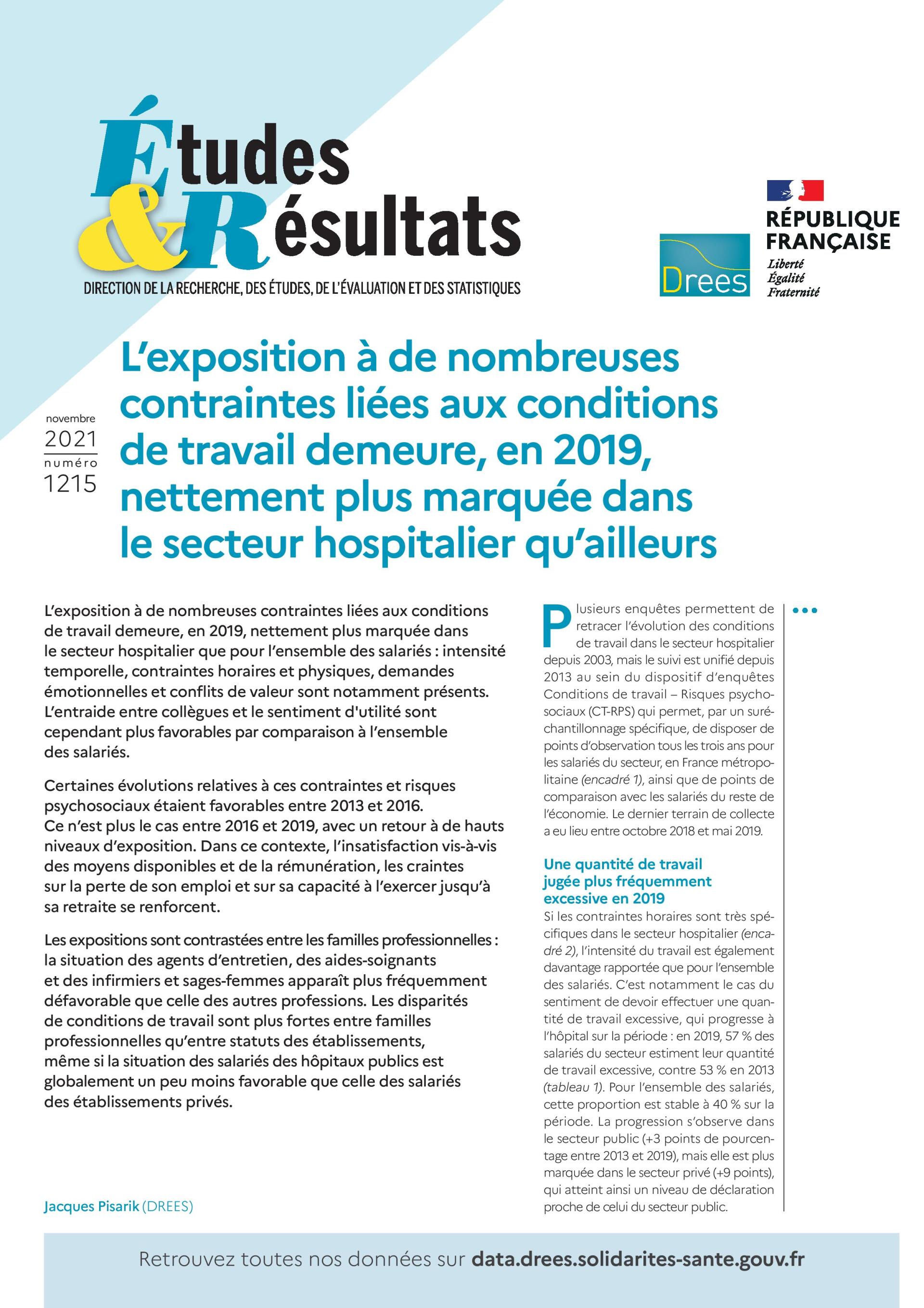 " L'exposition à de nombreuses contraintes liées aux conditions de travail demeure, en 2019, nettement plus marquée dans le secteur hospitalier qu'ailleurs...